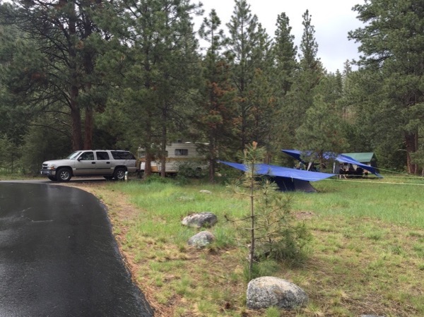 | There was a lot of rain on this particular trip, so we created a tent/tarp city. |